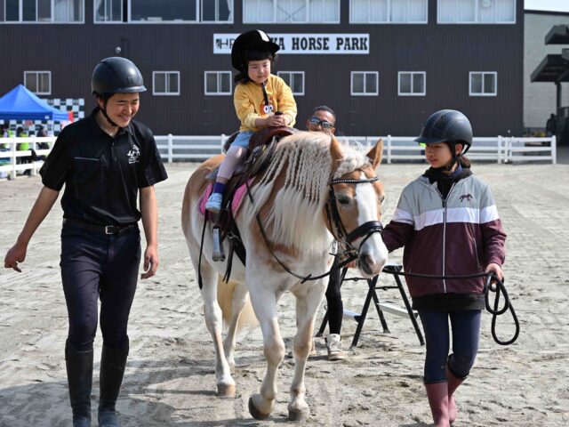 乗馬体験(引馬)では、馬の背に乗って場内をゆっくりと歩く貴重な体験に、子どもたちの笑顔があふれていました。また、おやつのニンジンをプレゼントする馬とのふれあいコーナーでは、最初はドキドキしながらも、馬の温かさにすっかり魅力を感じていただけたようでした。